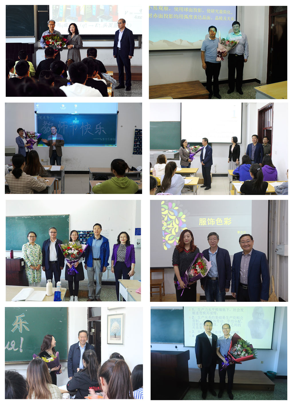 7:50分,校領導分別來到中區、東區和西區的教室,為正在準備上課的9位教師代表送上鮮花并祝他們節日快樂!校長陳桂芝代表學校感謝全校教職員工為學生成才和學校發展做出的突出貢獻,她表示,學校的發展凝聚著大家的辛勤努力和無私奉獻,希望全校教職工愛崗敬業,開拓創新,以身作則、率先垂范,繼續發揚優良傳統、樹立師德風范,始終把“立德樹人”作為根本任務,爭當“四有”好老師,圍繞有特色地方高水平應用型綜合大學建設目標,乘勢而上,做出新的貢獻。