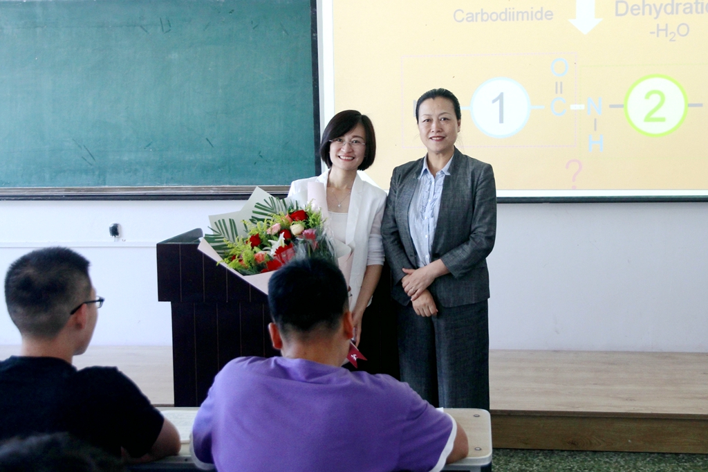 校長陳桂芝來到1教227教室慰問生命科學與農林學院教師李珊珊