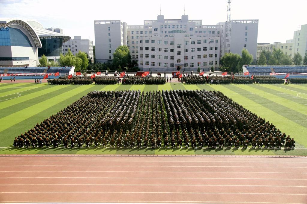 軍訓總結大會結束后,與會校領導及軍訓團司、政、后領導成員與武警齊齊哈爾支隊官兵合影留念。