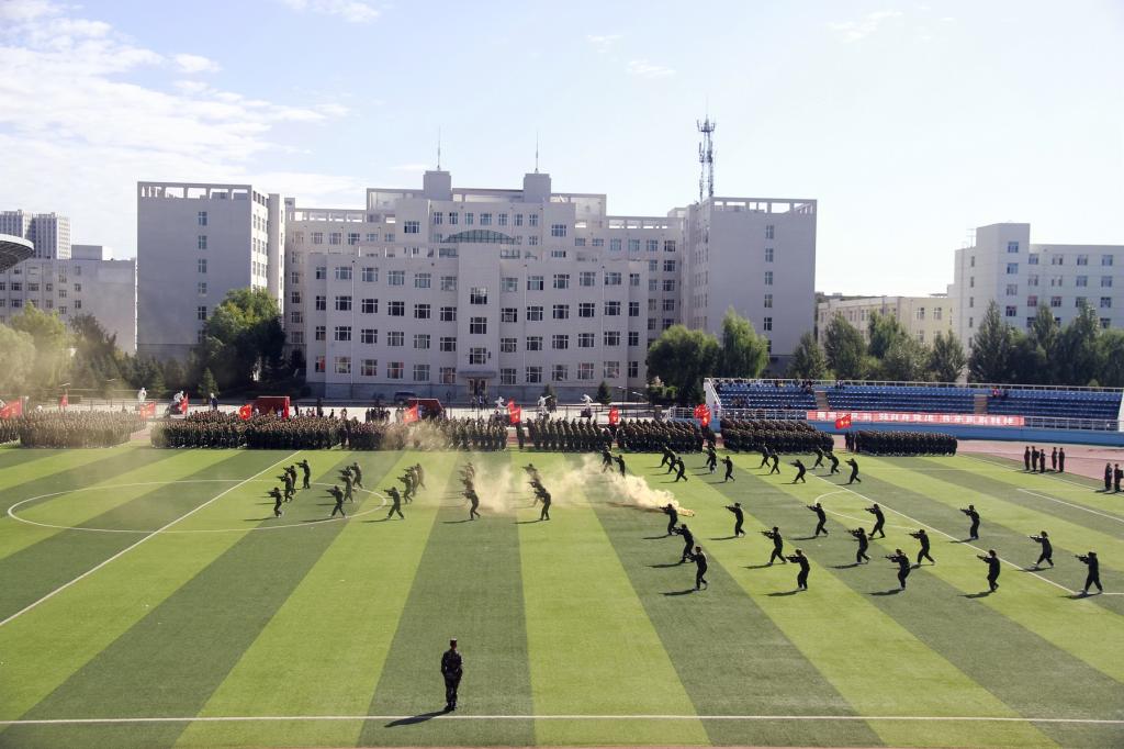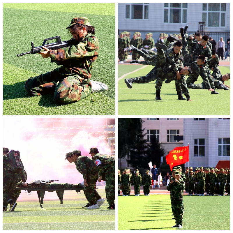十六營(材料科學與工程學院)為大會做戰術基礎動作表演;七營(計算機與控制工程學院)為大會做戰場救護表演;五營(體育學院)為大會做擒敵拳表演。 隨后,武警承訓部隊教官進行了軍體拳、擒敵拳等軍事技能表演。戰士們口號響亮,動作精準凌厲,博得現場師生陣陣雷鳴般的掌聲。