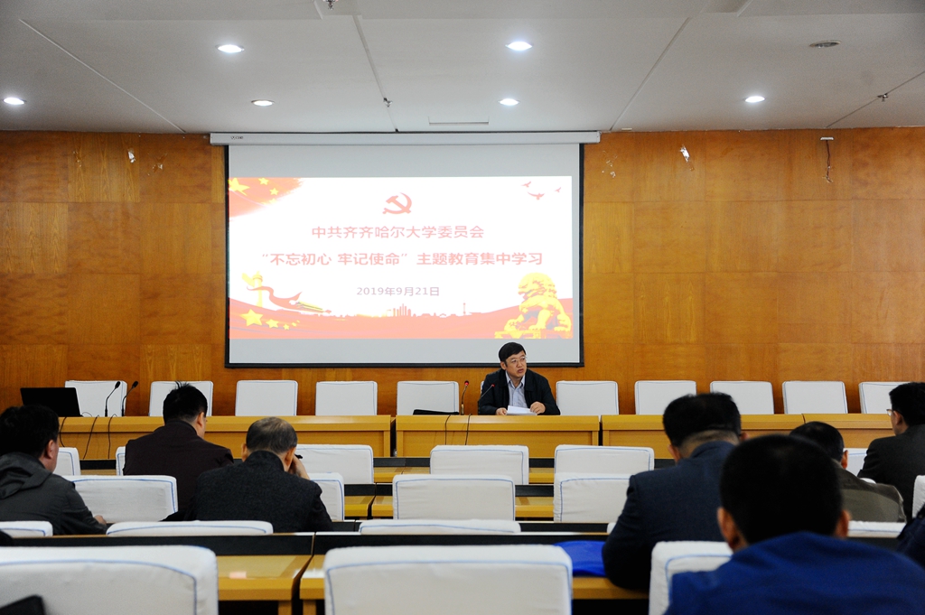 9月21日上午,全校機(jī)關(guān)各部門以及教輔單位副處級(jí)以上黨員干部在西區(qū)主樓七樓學(xué)術(shù)報(bào)告廳開展“不忘初心、牢記使命”主題教育集中學(xué)習(xí)。校黨委副書記張文治出席學(xué)習(xí)會(huì)。