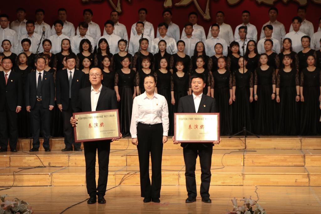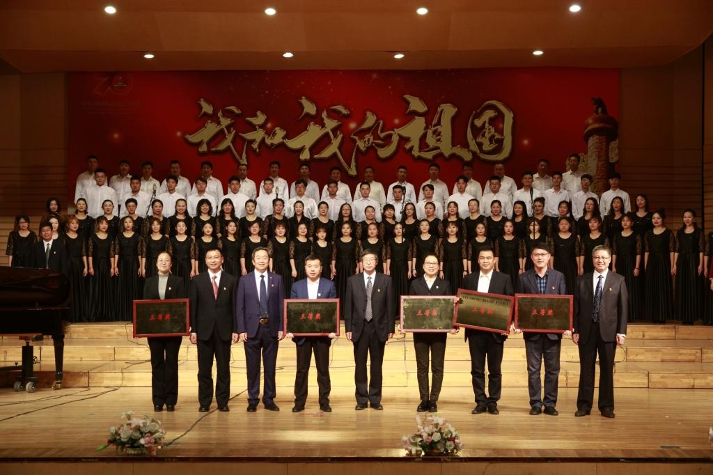 放歌新時(shí)代,筑夢(mèng)新征程。在新中國(guó)70華誕即將來臨之際,為營(yíng)造團(tuán)結(jié)奮進(jìn)、熱烈喜慶的氛圍,將學(xué)校“不忘初心、牢記使命”主題教育與慶祝新中國(guó)成立70周年系列活動(dòng)結(jié)合起來。9月25日,我校在音樂廳隆重舉行了慶祝新中國(guó)成立70周年“我和我的祖國(guó)”師生大合唱比賽。校領(lǐng)導(dǎo)陳桂芝、齊宏偉、張文治、王剛、李英杰、姜國(guó)慶、張樹軍、呂厚均、陶佰睿,黨委常委、宣傳統(tǒng)戰(zhàn)部長(zhǎng)王曉梅,黨委常委、組織部長(zhǎng)馬文輝出席活動(dòng)并為獲獎(jiǎng)單位頒獎(jiǎng)。