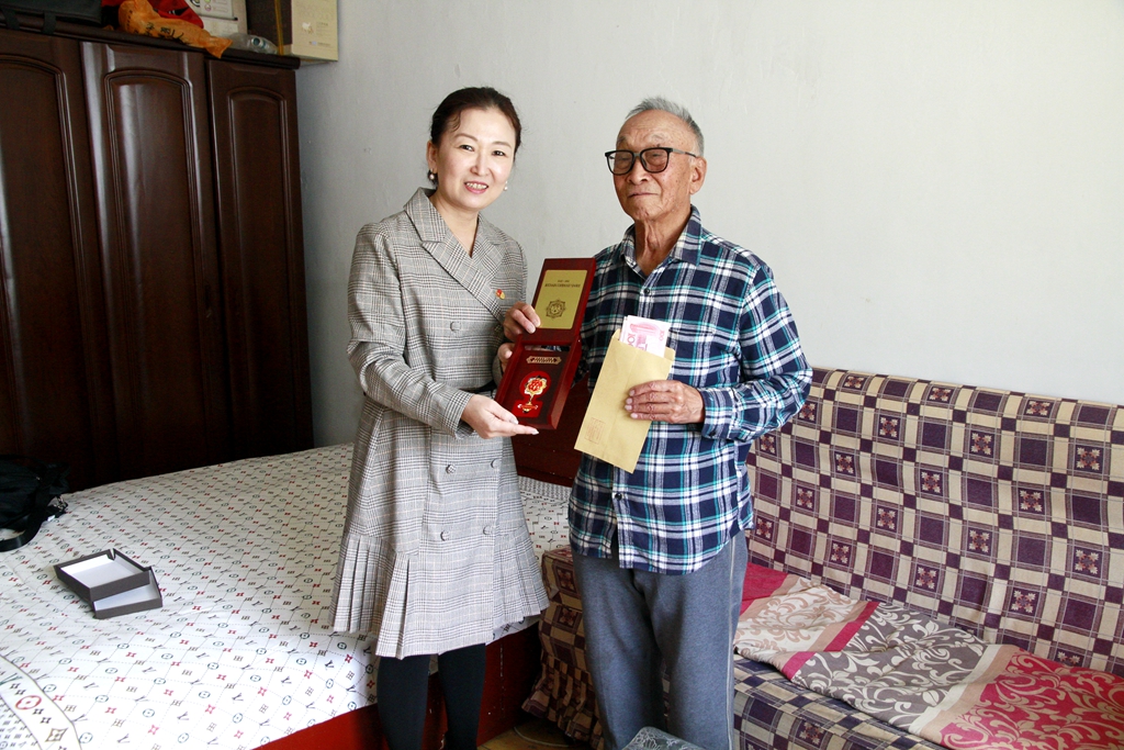 在慶祝新中國成立70周年之際,9月29日上午,校長陳桂芝、校黨委副書記齊宏偉、校黨委副書記張文治分別走訪慰問了我校離休老同志張秀才、任海平、陳國春,向他們致以崇高敬意和親切慰問,并轉送了由中共中央、國務院、中央軍委頒發的“中華人民共和國成立70周年紀念章”,還向他們轉交了一千元慰問金。