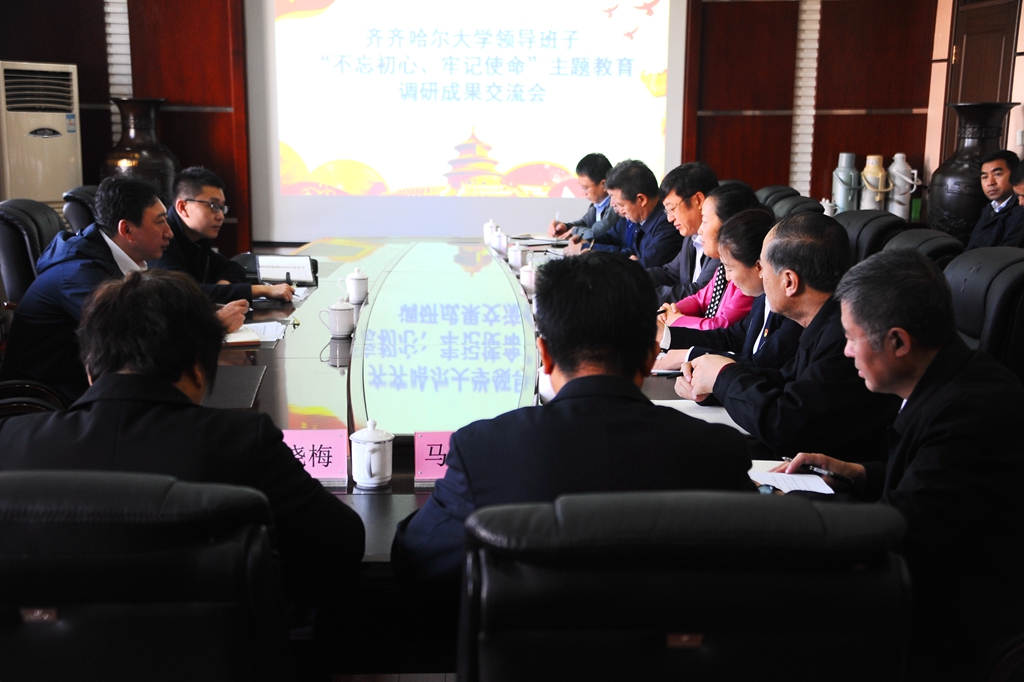 按照省委“不忘初心、牢記使命”主題教育的安排部署,10月18日上午,齊齊哈爾大學領導班子“不忘初心、牢記使命”主題教育調研成果交流會在辦公樓504會議室召開。省委第一巡回指導組成員張福林、袁星野到會指導。校黨委班子成員參加會議,相關部門負責人列席會議。會議由校黨委副書記、校長陳桂芝主持。