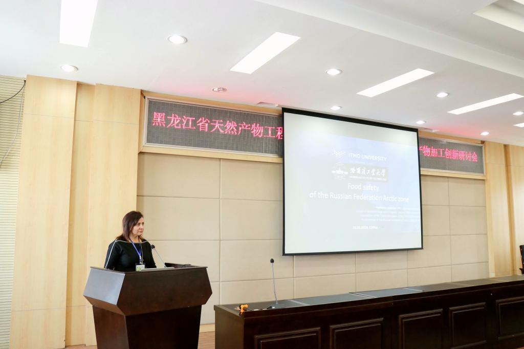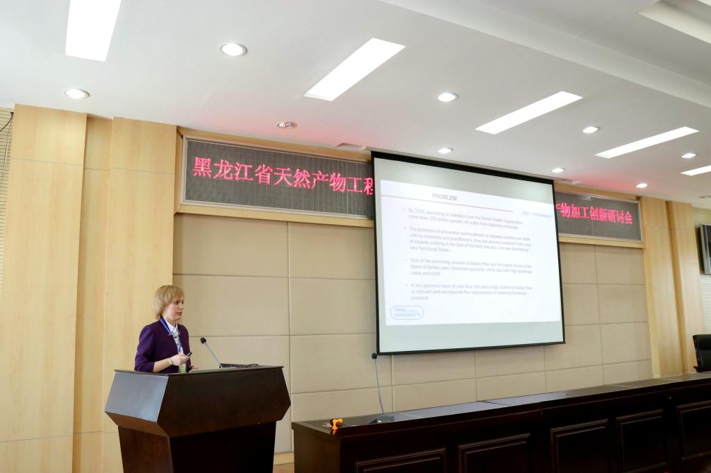 俄羅斯圣彼得堡國家信息技術、機械學與光學研究型(ITMO)大學納托奇 劉迪米拉(NADTOCHII LIUDMILA)副教授代表外籍專家在開幕式上致辭,她表示,此次研討會的舉辦為中俄天然產物和食品加工學術領域的專家學者搭建了一個高端的學術交流平臺,與會外籍專家將珍惜此次難得的機會,與中國相關領域專家學者深入交流,期待科研思維的碰撞能夠激發出學術創新的火花,共同推動相關領域的科研工作取得新進展。