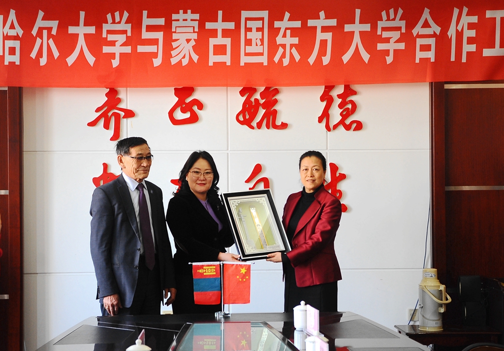 額·溫都爾瑪在講話中對我校的熱情接待表示感謝,對蒙古國東方大學(xué)的歷史沿革、發(fā)展現(xiàn)狀和辦學(xué)特色進行了介紹。她指出,蒙古國各階段的學(xué)生都對中文有很大的學(xué)習(xí)需求,齊齊哈爾大學(xué)和蒙古國東方大學(xué)在外語培訓(xùn)、教師交流互訪、學(xué)生交換、人才培養(yǎng)、科學(xué)研究等方面有很多合作空間。她建議,通過選派東方大學(xué)的師生到齊齊哈爾大學(xué)學(xué)習(xí)漢語,兩校學(xué)生聯(lián)合舉辦音樂、體育等活動形式,促進雙方師生在科技文化等領(lǐng)域的交流,給雙方師生創(chuàng)造更多的學(xué)習(xí)、深造機會。