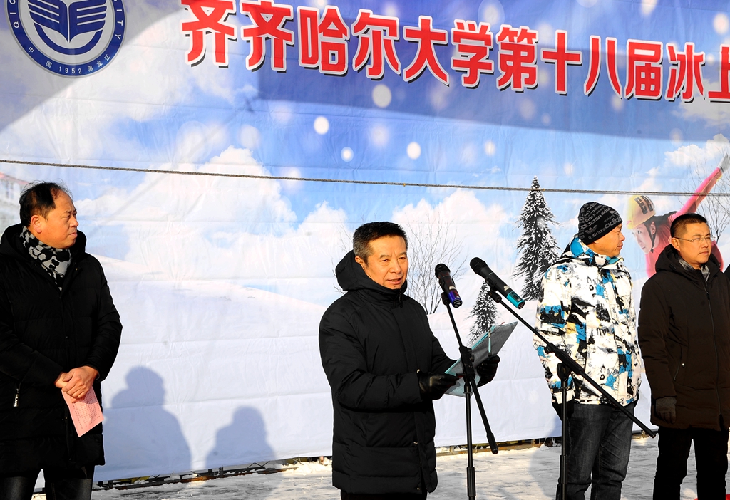 12月25日下午,齊齊哈爾大學第十八屆大學生冰上運動會在勞動湖冰場舉行。副校長李英杰出席開幕式,教務處、學生工作部(學生處)負責人和體育學院領導班子成員,廣大愛好冰雪運動的師生參加了開幕式。開幕式由體育學院院長張良祥主持。