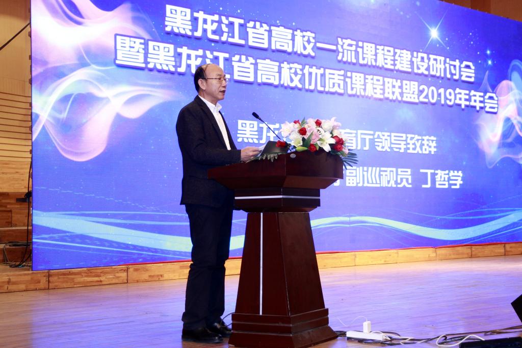 丁哲學代表省教育廳致辭,對會議的隆重召開表示熱烈祝賀,對聯盟工作及我省精品在線開放課程建設給與了充分肯定,對齊齊哈爾大學支持承辦本次會議表示由衷感謝。