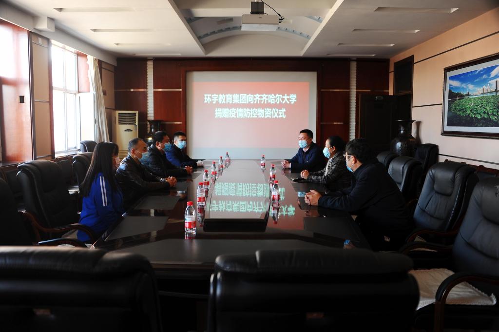 3月23日下午,團市委書記馬福明、副書記徐渤程,環宇教育集團齊齊哈爾分校校長孫興隆等一行8人來到我校,向學校捐贈了八四消毒液100桶、酵素消毒液6桶、酒精2箱、抗疫消毒袋10個和醫用口罩500只等防疫物資。學校在辦公樓504會議室舉行捐贈儀式,校黨委書記、校長陳桂芝,校黨委副書記張文治出席儀式,校團委負責人參加了捐贈儀式,儀式由陳桂芝主持。