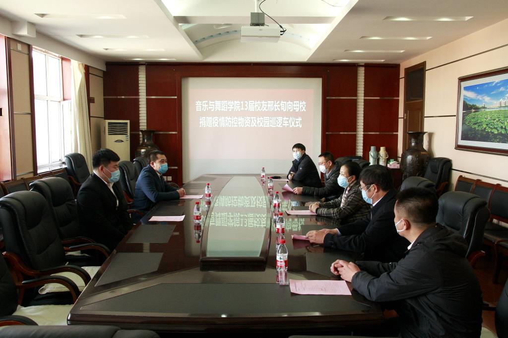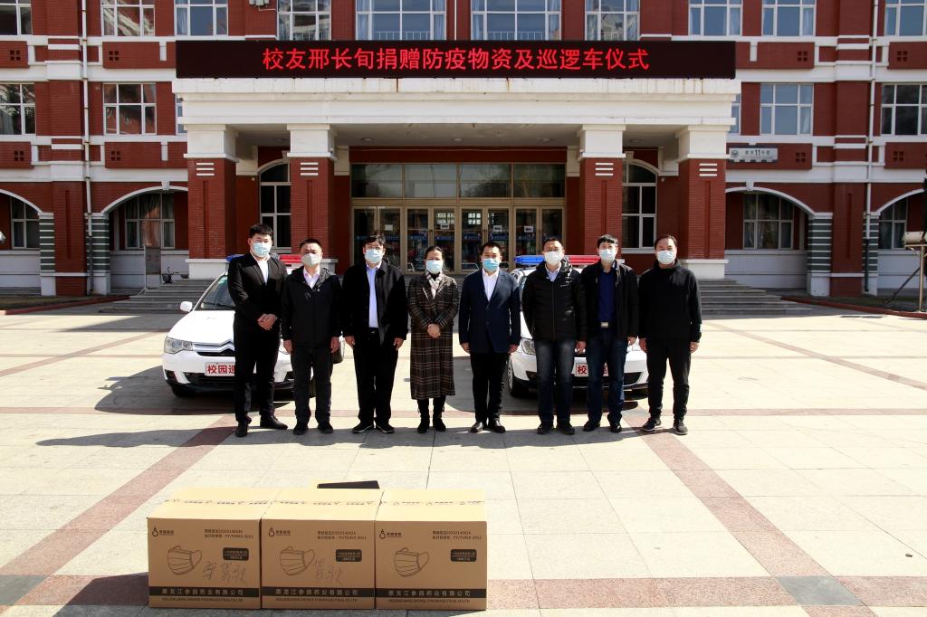 師恩難忘,母校情深。3月30日上午,我校音樂與舞蹈學(xué)院2013屆畢業(yè)生、齊齊哈爾市安通駕校、宏遠(yuǎn)駕校、依安縣恒信駕校校長(zhǎng)、大學(xué)生創(chuàng)業(yè)園蓋世杰創(chuàng)客咖啡屋經(jīng)理邢長(zhǎng)旬,校長(zhǎng)助理何健一行2人來到我校,向?qū)W校捐贈(zèng)了校園巡邏車2臺(tái)、醫(yī)用口罩5000只。學(xué)校在辦公樓504會(huì)議室舉行捐贈(zèng)儀式,校黨委書記、校長(zhǎng)陳桂芝,校黨委副書記張文治,校工會(huì)主席陶佰睿出席儀式,武裝部(保衛(wèi)處)、校團(tuán)委負(fù)責(zé)人參加了捐贈(zèng)儀式,儀式由陳桂芝主持。