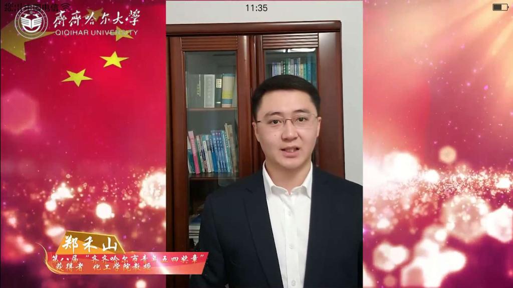 第八屆“齊齊哈爾市五四青年獎(jiǎng)?wù)隆鲍@得者、化學(xué)與化學(xué)工程學(xué)院鄭禾山教授對(duì)廣大青年學(xué)生提出寄語(yǔ)。