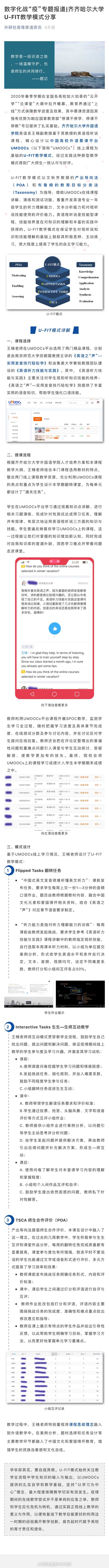 編者按:5月15日,外研社高等英語資訊公眾號在其“數字化戰‘疫’”專題中分享了“齊齊哈爾大學U-FIT教學模式”,深入報道我校外國語學院青年教師王楠戰“疫”期間在線教學新模式。外研社高等英語資訊公眾號由外語教學與研究出版社創辦,旨在傳播行業資訊,探索前沿理念,促進學生成長,推動教學發展。3月初以來,外研社啟動“數字化戰‘疫’”專題報道,選取國內高校英語專業優秀教學案例進行推薦、分享。我校教師王楠的教學模式被選中推薦后,迅速獲得了同行們的肯定和稱贊。