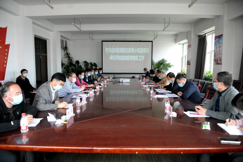 6月4日上午,由齊齊哈爾市政府副秘書長胡本全、市委教育工委副書記田宇、市教育局三級調研員周立山以及市衛健委、市場監管局、市公安局等單位相關工作人員一行10人組成的評估驗收組代表市應對疫情防控領導小組指揮部來到我校評估驗收復學防疫工作。校領導陳桂芝、張文治、王剛、李英杰、陶佰睿以及學校相關部門負責人陪同評估驗收。