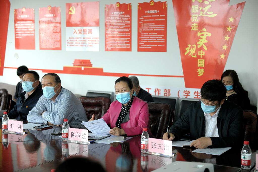 在學校辦公樓516會議室,評估驗收組聽取了我校黨委書記、校長、校疫情防控工作領導小組組長陳桂芝關于學校完善復學準備各項工作方案,進一步做好疫情常態化、精準化防控相關工作的介紹。