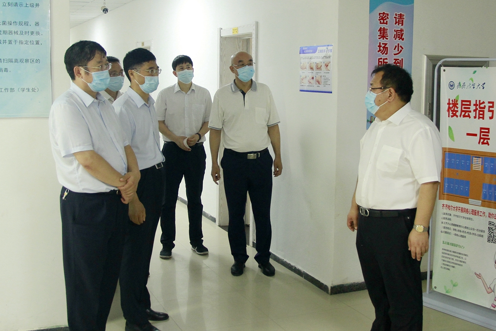 為進一步做好校園疫情防控工作,7月6日下午,校長董玉庭在相關校領導及相關部門負責人陪同下深入學校抗疫一線,對學校常態化疫情防控工作開展情況進行了調研指導。