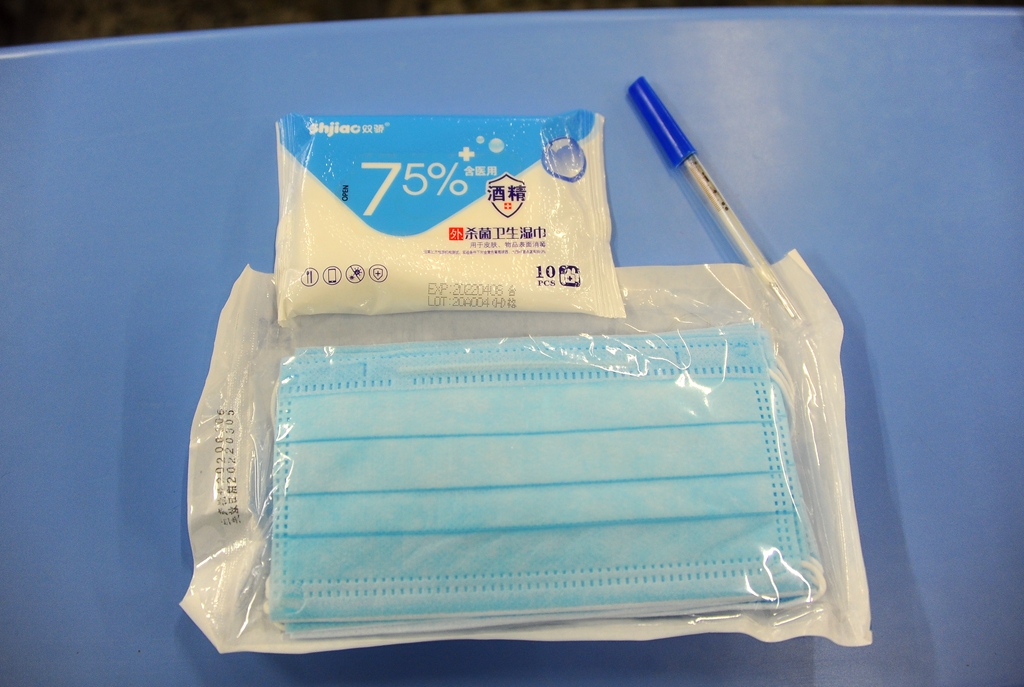 等候檢測(cè)結(jié)果期間,同學(xué)們還領(lǐng)取了學(xué)校專門(mén)為他們準(zhǔn)備的防疫健康包和餐包。