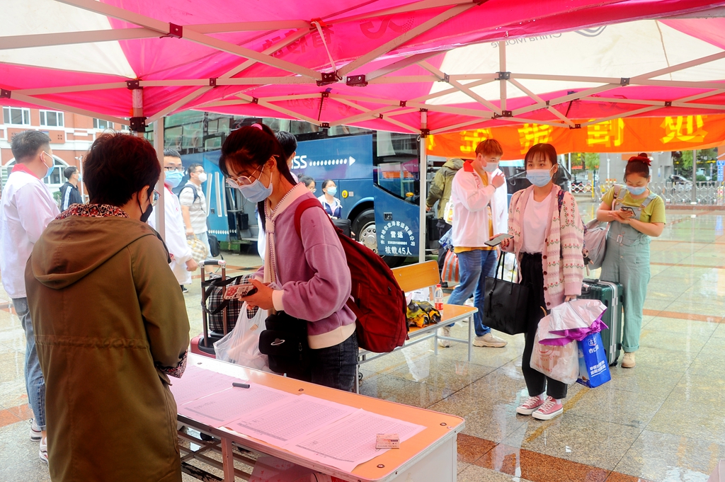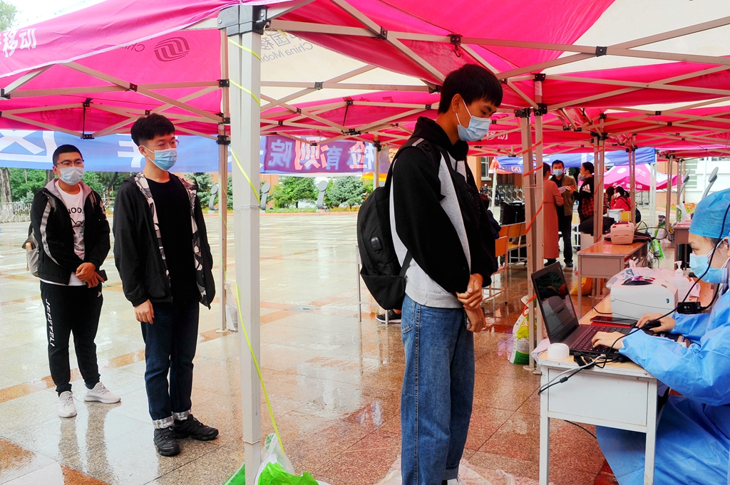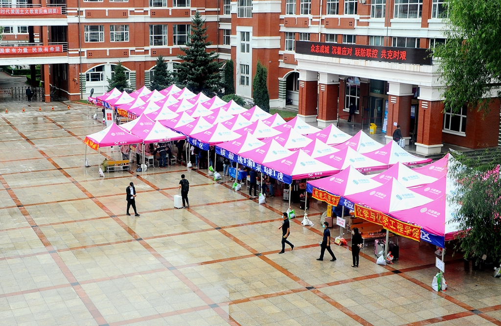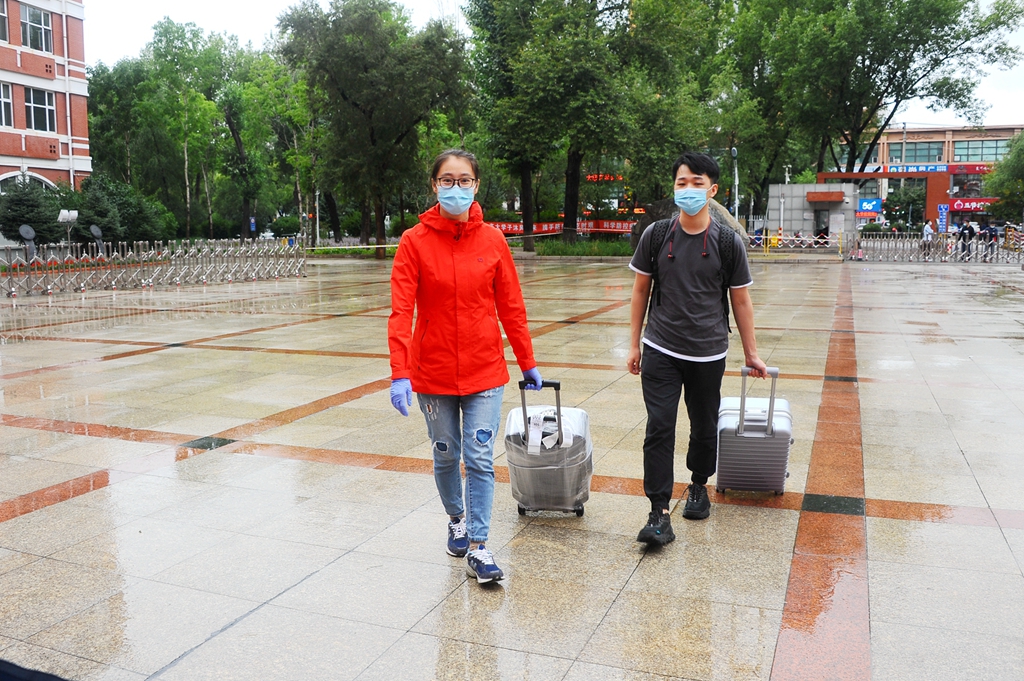 學(xué)校在齊齊哈爾火車站、齊齊哈爾火車南站、齊齊哈爾客運(yùn)樞紐站、齊齊哈爾機(jī)場(chǎng)組織了集中接站,學(xué)生出站后嚴(yán)格執(zhí)行“掃碼、測(cè)溫、戴口罩”措施,進(jìn)行行李消殺,通過(guò)“通信大數(shù)據(jù)行程卡”核查學(xué)生行動(dòng)軌跡,無(wú)異常情況的同學(xué)集體乘車到校直接進(jìn)入校園;自行返校報(bào)到的同學(xué)在中區(qū)和東區(qū)校門(mén)口按1.5米以上間隔排隊(duì),嚴(yán)格執(zhí)行“掃碼、測(cè)溫、戴口罩”措施,在工作人員的引導(dǎo)下,通過(guò)“完美校園”APP掃碼入校,進(jìn)行行李消殺,“通信大數(shù)據(jù)行程卡”核查行動(dòng)軌跡無(wú)異常后進(jìn)入校園。