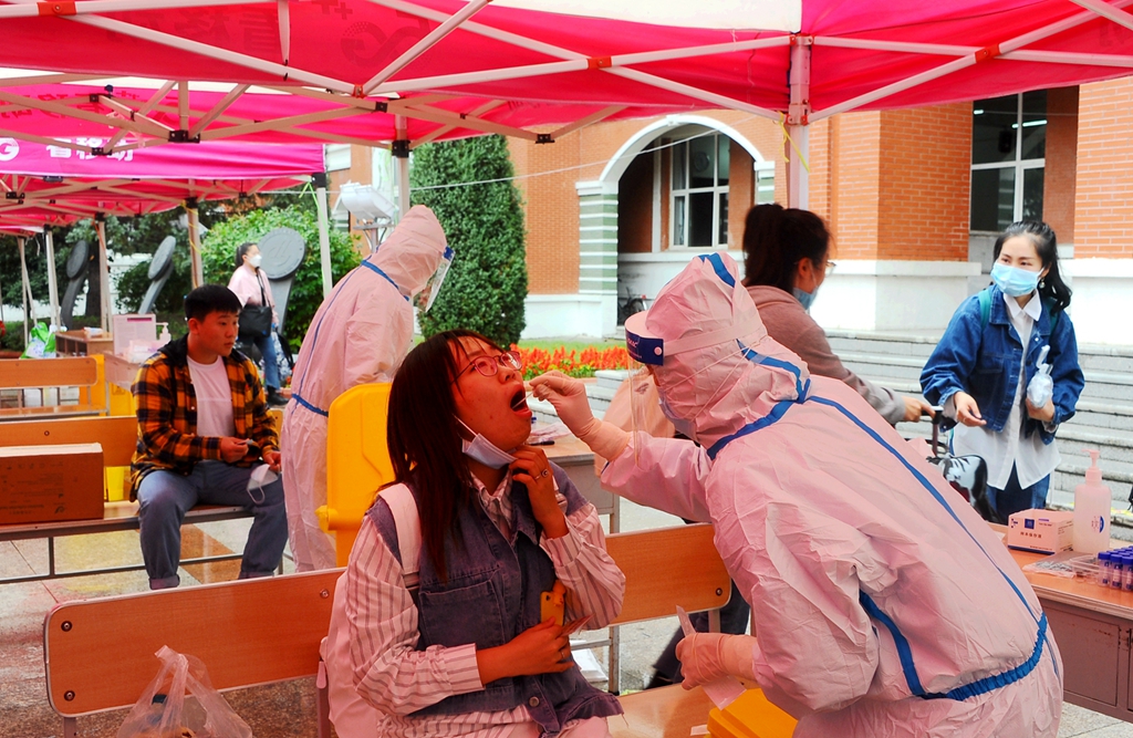 進(jìn)入校園后,同學(xué)們?cè)诠ぷ魅藛T的引導(dǎo)下有序報(bào)到,到學(xué)校設(shè)立的核酸檢測(cè)地點(diǎn)統(tǒng)一進(jìn)行核酸檢測(cè)。學(xué)生核酸檢測(cè)采樣結(jié)束后,到學(xué)校指定教室分散就座觀看視頻《開(kāi)學(xué)防疫第一課》,等待檢測(cè)結(jié)果。