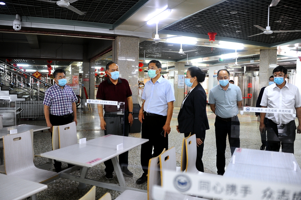 聽取匯報(bào)后,董成一行詳細(xì)查閱了學(xué)校疫情防控工作有關(guān)方案、記錄、臺(tái)賬等實(shí)證材料,并實(shí)地查看了中區(qū)11號(hào)教學(xué)樓、學(xué)校衛(wèi)生所、中區(qū)學(xué)生一食堂、洗浴中心和培訓(xùn)中心隔離區(qū)等場(chǎng)所。