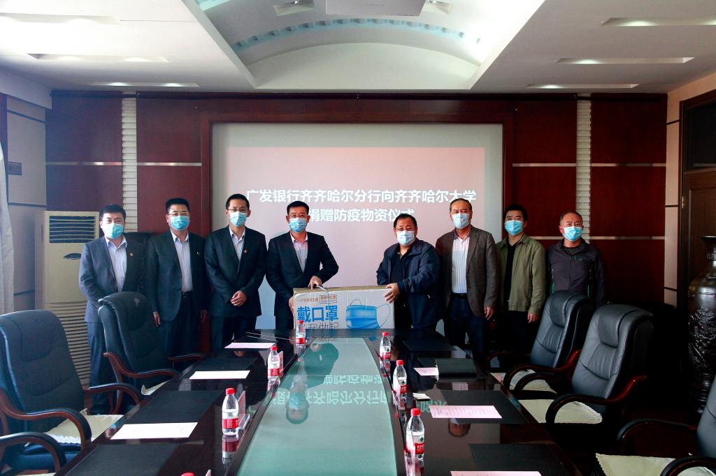 在2020級新生即將報到之際,為支持學校疫情防控工作,9月16日下午,廣發銀行股份有限公司齊齊哈爾分行黨委書記、行長畢德志一行來到我校,向學校家庭經濟困難學生捐贈一次性醫用口罩52000只,助力學校疫情防控工作。