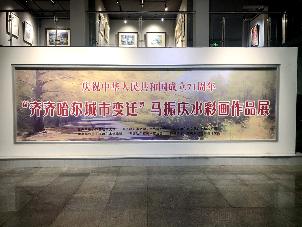 為慶祝中華人民共和國成立七十一周年,由齊齊哈爾大學、齊齊哈爾市文學藝術界聯(lián)合會、齊齊哈爾市文化廣電和旅游局主辦,齊齊哈爾市博物館、齊齊哈爾市美術家協(xié)會、齊齊哈爾大學美術與藝術設計學院承辦的“齊齊哈爾市城市變遷——馬振慶水彩畫作品展”,于9月10日在齊齊哈爾市博物館開幕。