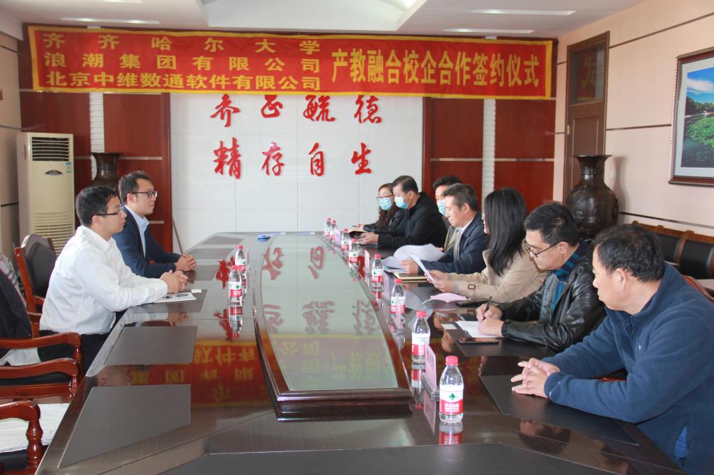 10月5日下午,我校與浪潮集團有限公司、北京中維數通軟件有限公司在學校辦公樓504會議室舉行產教融合校企合作簽約儀式。副校長李英杰,浪潮集團有限公司總經理吳鑫,北京中維數通軟件有限公司總經理、我校96屆優秀校友魏洪春出席簽約儀式。招生就業處、教務處以及計算機與控制工程學院等單位負責人參加了簽約儀式。儀式由計算機與控制工程學院院長郭媛主持。