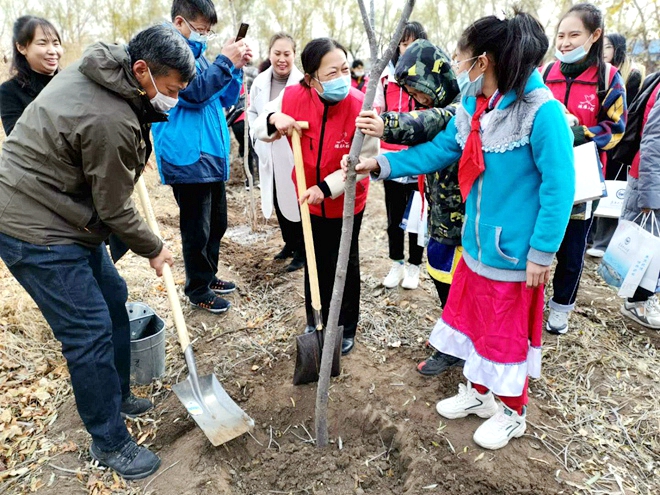 捐資助學儀式結束后,大家一同來到“鴻雁工程林”,共同種下了8棵紫葉桃李樹,這8棵紫葉桃李樹象征著愛與希望,寄寓著孩子們純真的夢想,希望鼓勵哈拉達族小學的孩子們和紫葉桃李樹一道,在友愛的環境里茁壯健康成長。