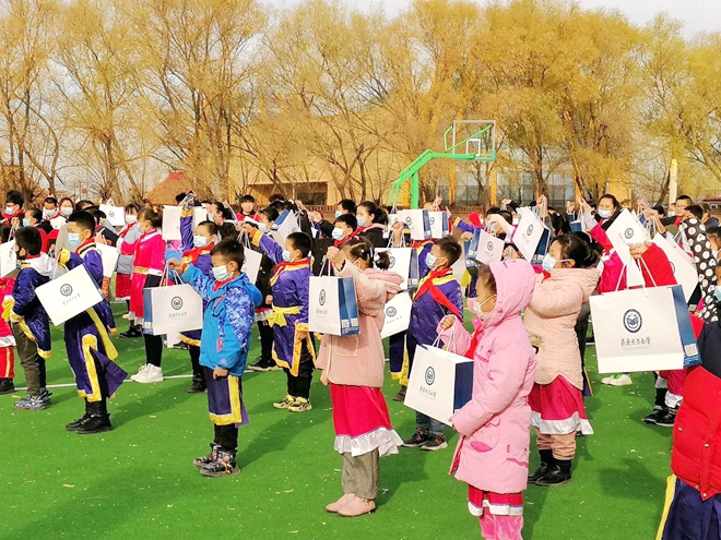 當志愿者把準備好的94份“愛心助學包”送到孩子們手里的時候,孩子們臉上洋溢著幸福的笑容。