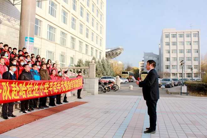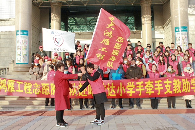 黨委常委、宣傳部部長王曉梅為志愿服務隊授旗。