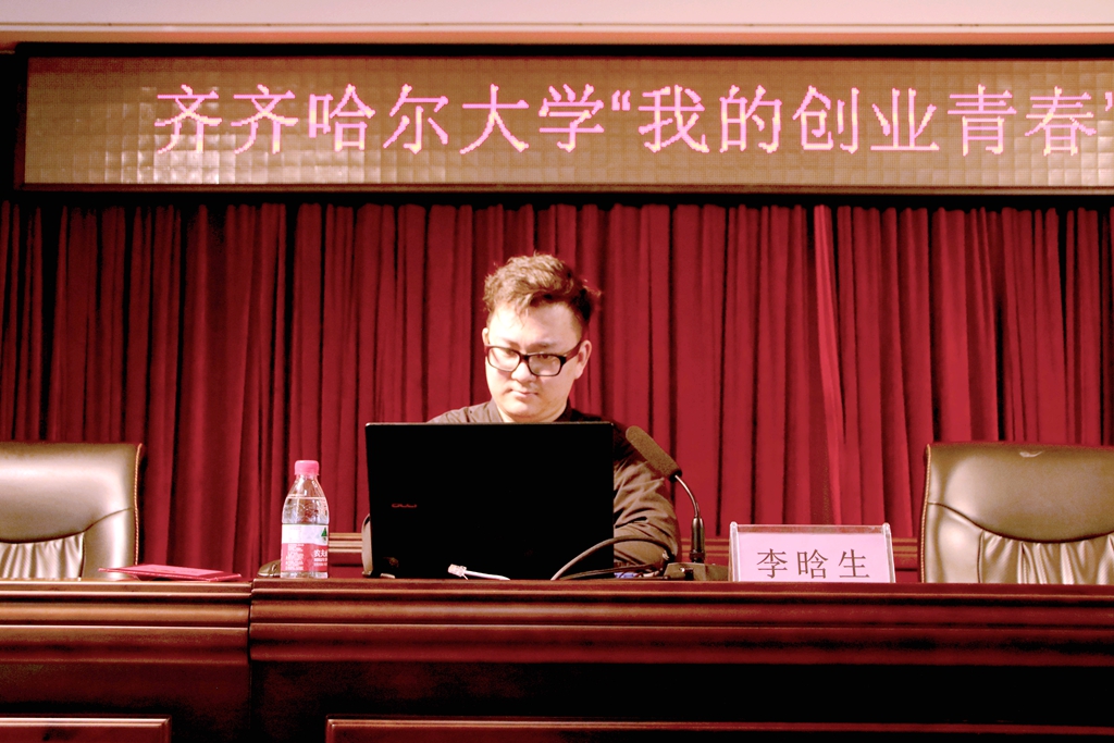 開幕式后,舉行本屆科技節第一項校級活動—“我的創業青春”大學生創業故事分享會。學校特聘的齊齊哈爾大學創新創業導師、青年創業代表李晗生與在場師生共同分享了他的創新創業故事。