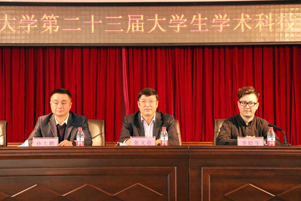 張文治代表學校黨委致詞并對我校青年學生提出要求和希望。一是希望我校青年學生大力弘揚科學家精神。要大力弘揚胸懷祖國、服務人民的愛國精神,追求真理、嚴謹治學的求實精神,集智攻關、團結協作的協同精神,在助力國家科技自立自強中抒發報國之志、實現強國夢想;二是希望我校青年學生在科技創新實踐中,堅持需求導向和問題導向。要注重解決科技創新研究方向的確定和選題,堅持以需求導向確定科技創新研究方向,確保科研選題能夠切實解決實際問題;三是希望我校青年學生在參與科技創新實踐中,要立足所學專業特點、充分發揮專業優勢。要不斷開拓思路、加強創新研究,將所學專業知識與學術科技創新實際有機結合起來;要注重提升科技創新的層次和水平,力爭取得更多高層次高水平的研究成果,為助力學校有特色地方高水平應用型綜合大學建設、服務地方經濟社會發展作出自己應有的貢獻。