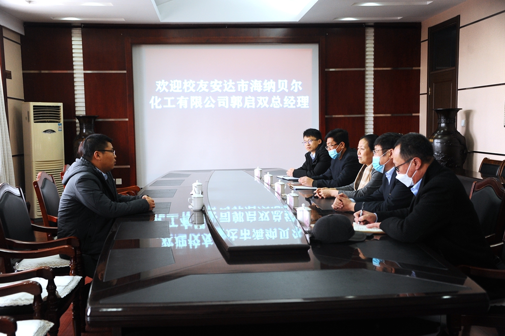 11月19日上午,校黨委書記陳桂芝、副書記張文治在學(xué)校辦公樓504會(huì)議室會(huì)見了我校化學(xué)工程與工藝專業(yè)2010屆校友、安達(dá)市海納貝爾化工有限公司總經(jīng)理郭啟雙一行。校黨委常委、組織部長(zhǎng)馬文輝和化學(xué)與化學(xué)工程學(xué)院、材料科學(xué)與工程學(xué)院負(fù)責(zé)人參加了會(huì)見。