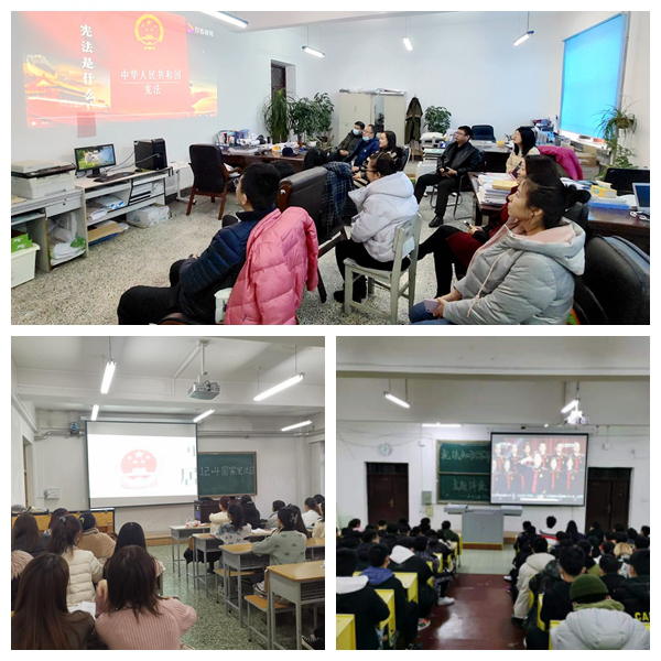 集中收看普法宣傳片。為使師生深入了解憲法意義、加大憲法普及力度,12月2-4日,建筑與土木工程學院、機電工程學院、音樂與舞蹈學院組織師生集中收看了《中國憲法》等法治宣傳教育片,通過直觀的視頻教育形式,使大家進一步了解了憲法的誕生過程、修訂歷程,更直觀、更形象地感受到了憲法的重要地位。