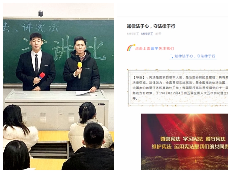 發揮新媒體作用。外國語學院、化學與化學工程學院、材料科學與工程學院、機電工程學院、建筑與土木工程學院發揮學生特長,將普法工作與演講、繪畫、新媒體平臺運營相結合,以舉辦演講比賽、手抄報比賽、公眾號主題推文、在線學習集中答題等形式開展了一系列新穎的普法宣傳活動,進一步激發同學們學習憲法的熱情。