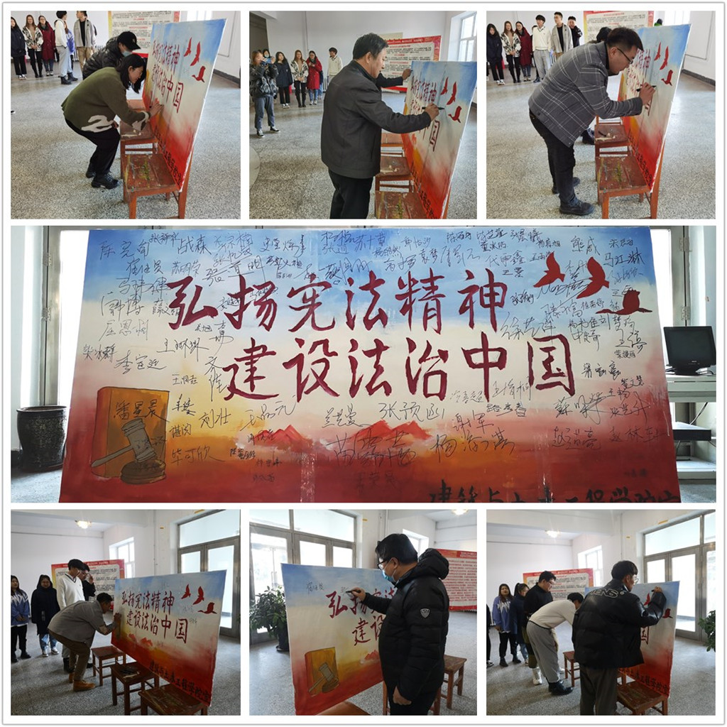 創新普法形式。為宣傳憲法知識,樹立法治觀念,使憲法精神深入人心,機電工程學院、國際教育學院、馬克思主義學院、輕工與紡織學院、文學與歷史文化學院、建筑與土木工程學院、教師教育學院、體育學院等單位以國家憲法日為契機分別以主題班會、主題簽名、主題宣講、主題座談、主題辯論賽、主題講座等形式開展了豐富多樣的法治宣傳活動,使法治精神之花開滿了冬日的齊大校園。