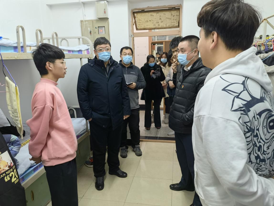 為進一步做好元旦、寒假放假前校園安全穩定和疫情防控工作,2020年12月31日下午,校黨委副書記張文治率領學生工作部(學生處)工作人員深入學生寢室,走訪慰問在校學生,代表學校向同學們致以新年問候,了解學生期末復習和返鄉準備情況。