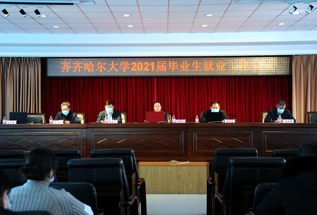 為深入貫徹落實(shí)黨的十九屆五中全會(huì)和省委十二屆八次全會(huì)精神,全面落實(shí)2021屆全國(guó)全省普通高校畢業(yè)生就業(yè)創(chuàng)業(yè)工作網(wǎng)絡(luò)視頻會(huì)議的部署要求,全力做好我校2021屆畢業(yè)生就業(yè)工作,1月8日下午,學(xué)校在林校區(qū)求實(shí)樓五樓會(huì)議室召開(kāi)2021屆畢業(yè)生就業(yè)工作會(huì)議。會(huì)議采用線上、線下相結(jié)合方式進(jìn)行,校黨委書(shū)記陳桂芝、校長(zhǎng)董玉庭、校黨委副書(shū)記張文治、副校長(zhǎng)張樹(shù)軍、副校長(zhǎng)呂厚均在主會(huì)場(chǎng)出席會(huì)議,學(xué)校就業(yè)工作專班成員,相關(guān)職能部門負(fù)責(zé)人和各二級(jí)學(xué)院黨委書(shū)記、院長(zhǎng)在主會(huì)場(chǎng)參加會(huì)議;各二級(jí)學(xué)院負(fù)責(zé)學(xué)生工作的副書(shū)記、系主任、全體輔導(dǎo)員通過(guò)騰訊會(huì)議線上參會(huì)。會(huì)議由陳桂芝主持。