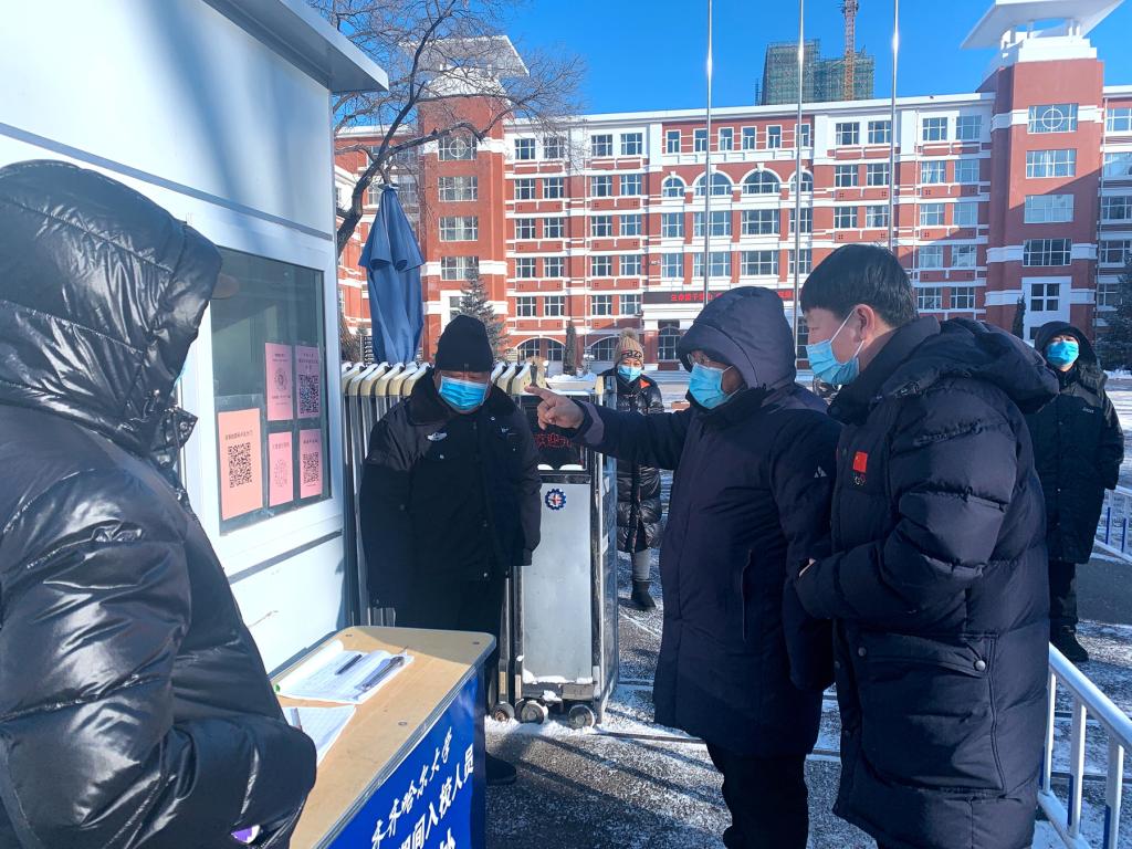 董玉庭一行先后走訪了中區校門、輕紡樓地下泵房、中區變電所、中區鍋爐房、學生公寓13號樓、110指揮中心、宣傳部值班室等地,詳細了解了學校寒假期間重要崗位人員值班值守情況,并對疫情防控工作落實情況進行了檢查和指導。