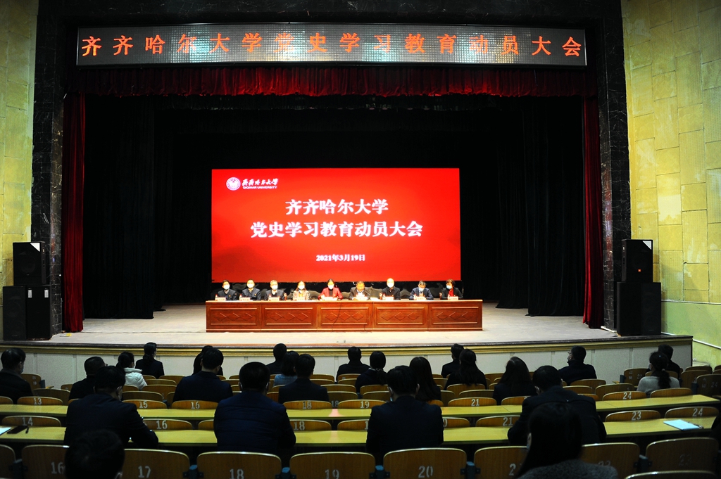 為深入學(xué)習(xí)貫徹習(xí)近平總書(shū)記在黨史學(xué)習(xí)教育動(dòng)員大會(huì)上的重要講話(huà)精神,認(rèn)真貫徹落實(shí)黨中央要求和省委、省委教育工委部署,高質(zhì)量高標(biāo)準(zhǔn)開(kāi)展好學(xué)校黨史學(xué)習(xí)教育,引導(dǎo)全校干部師生學(xué)黨史、悟思想、辦實(shí)事、開(kāi)新局,從黨的百年偉大奮斗歷程中汲取智慧和力量,以?xún)?yōu)異成績(jī)迎接中國(guó)共產(chǎn)黨成立100周年,3月19日,學(xué)校黨史學(xué)習(xí)教育動(dòng)員部署大會(huì)在文化宮召開(kāi)。