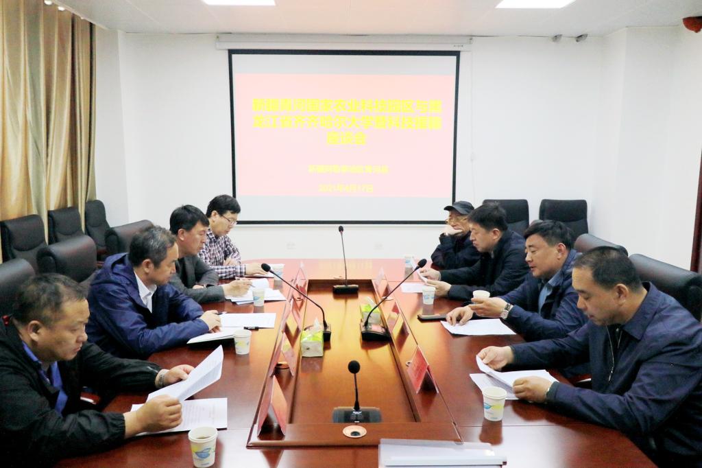 實地踏查結束后,青河縣委在青河國家農業科技園區召開了科技援疆座談會。會上,代忠良代表青河縣委對呂厚均副校長一行表示熱情歡迎,對學校近年來發展中取得的教學科研成果給予高度肯定。并希望通過此次實地考察,進一步加強青河縣與齊齊哈爾大學的產學研合作,結合青河國家農業園區重點科技項目建設的戰略目標和實際需求,促進高技術成果產業化,共同推進雙方資源共享,實現優勢互補、合作共贏,切實提升我校科研優勢,為科技援疆助力。