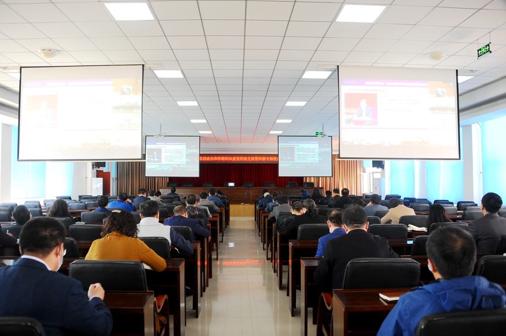 我校校長董玉庭、校黨委副書記齊宏偉、校黨委副書記張文治、副校長呂厚均和相關職能部門負責人、各二級教學單位黨政主要負責人在求實樓5樓會議室通過視頻會議的方式參會。