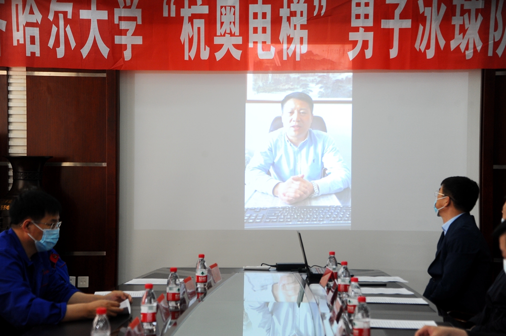 齊齊哈爾市杭奧電梯有限公司相關(guān)負(fù)責(zé)人,我校黨委統(tǒng)戰(zhàn)部部長孔維海和體育學(xué)院黨政領(lǐng)導(dǎo)班子成員以及各系部負(fù)責(zé)人、我校冰球隊(duì)隊(duì)員參加了會議。