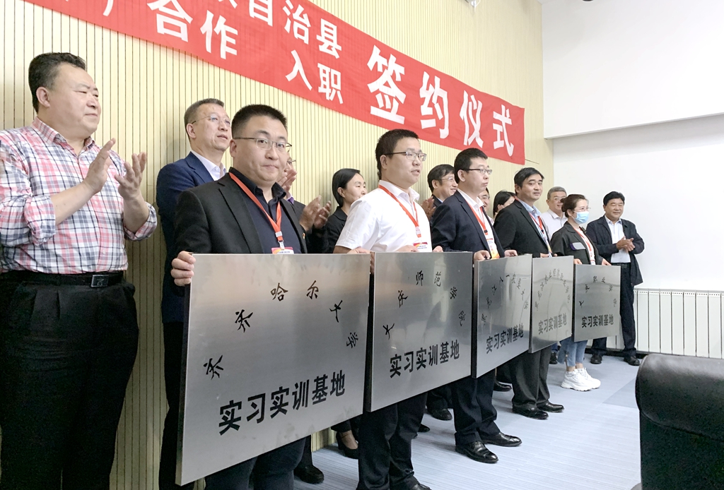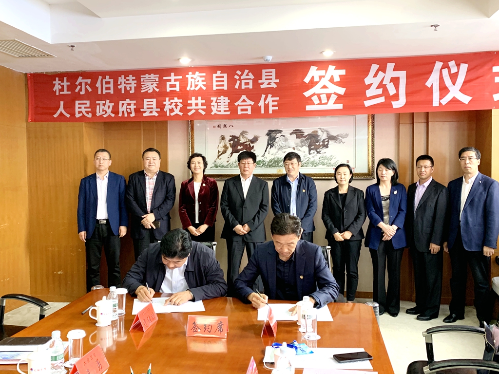 為貫徹落實黨中央、國務院“六穩”“六保”決策部署,進一步加強校企合作,鞏固和拓展省內就業平臺,服務地方經濟發展,助力我校畢業生充分高質量留省就業,6月4日上午,我校參加了杜爾伯特蒙古族自治縣與八所高校縣校共建合作的簽約儀式。杜爾伯特蒙古族自治縣縣委書記張劍出席儀式并致辭,縣委副書記、縣長張家文在儀式上介紹相關情況,縣委常委、副縣長寧峰主持儀式。我校黨委副書記張文治出席儀式,招生就業處處長楊國志及相關人員參加儀式。