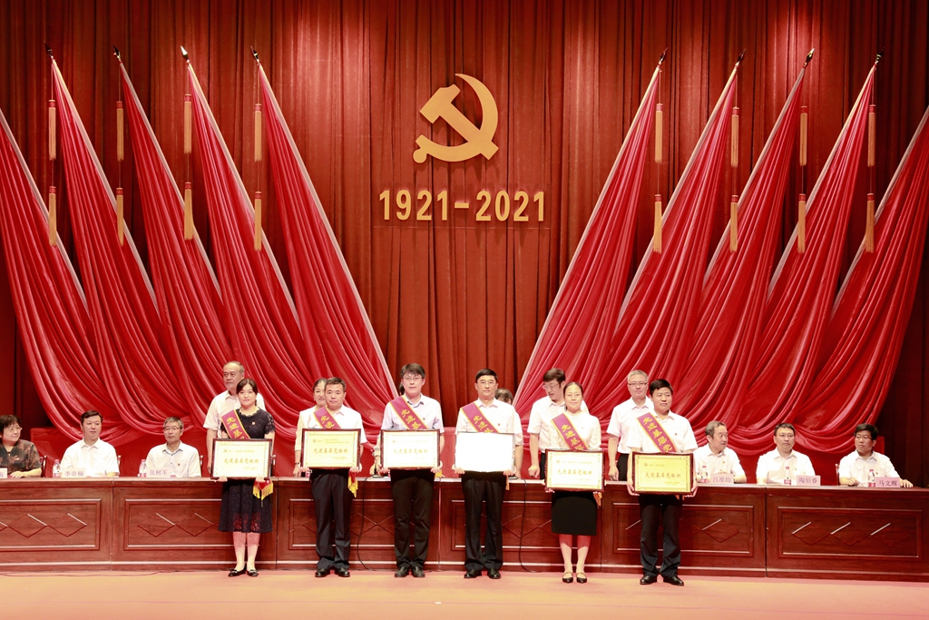 董玉庭在講話中指出,中央、省委、市委分別對“兩優一先”進行了表彰,黨中央隆重舉行了慶祝中國共產黨成立100周年“七一勛章”頒授儀式,今天我們表彰了全校涌現出的先進基層黨組織和優秀個人。希望全校各級黨組織和廣大黨員、干部要向各級黨組織表彰的“兩優一先”學習,尤其是要學習“七一勛章”獲得者堅定信念、踐行宗旨、拼搏奉獻、廉潔奉公的高尚品質和崇高精神,以我們身邊“先優”為榜樣,繼承和發揚黨的優良作風和光榮傳統,在傳承紅色基因、堅定信仰信念、踐行黨的宗旨、強化使命擔當、踏實勤勉敬業等方面持續發揮先鋒模范作用。