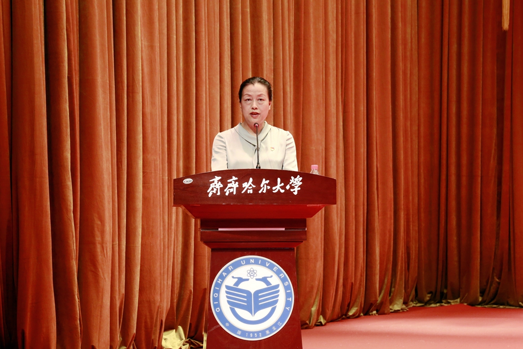 陳桂芝強調,我們要堅持以習近平新時代中國特色社會主義思想為指導,深入貫徹落實習近平總書記重要講話重要指示精神,從黨的百年奮斗歷史中汲取奮進力量,把黨的歷史學習好、總結好,把黨的寶貴經驗傳承好、發揚好,堅持初心和使命這個根本動力,學思踐悟習近平新時代中國特色社會主義思想;堅持全心全意為人民服務這個根本宗旨,努力辦好人民滿意大學;堅持社會主義辦學這個根本方向,全面深化教育教學改革;堅持立德樹人這個根本任務,全面落實“質量立校、人才強校、特色興校、文化鑄?!睉鹇裕粓猿贮h的領導這個根本保證,全面加強學校治理體系和治理能力現代化建設,光大“養正毓德、精存自生”的校訓精神,弘揚“大愛大道大學”的優良校風,彰顯“為人為學為師”的淳厚教風,堅守“四個相統一”,當好“四個引路人”,爭做“四有好老師”,培養擔當民族復興大任的時代新人,充分履行大學職能,在黑龍江全面振興全方位振興的偉大實踐中體現齊大的新擔當新氣象新作為。要以建黨百年為新起點,以史明志、知史愛黨,在開展黨史學習教育中鑄牢新思想。要以建黨百年為新起點,不忘初心、牢記使命,在構建龍江高質量教育體系中開拓新路徑。要以建黨百年為新起點,強基固本、正風肅紀,在推進全面從嚴治黨中開創新局面。要以建黨百年為新起點,擔責作為、愛校如家,在辦好人民滿意大學中體現新擔當。