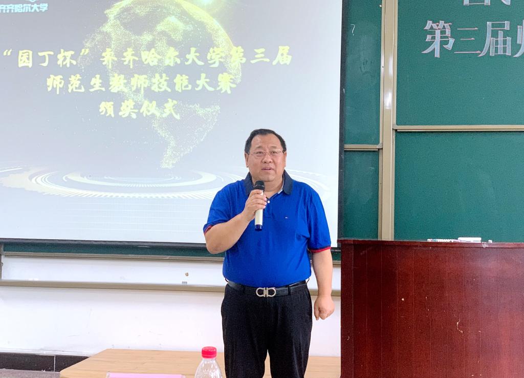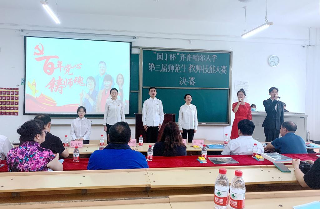 為切實加強師范類專業(yè)建設(shè),強化師范生教學(xué)技能培養(yǎng),努力實現(xiàn)“一踐行三學(xué)會”的人才培養(yǎng)目標(biāo),7月7日下午,由教務(wù)處、校團(tuán)委主辦,教師教育學(xué)院承辦的“園丁杯”齊齊哈爾大學(xué)第三屆師范生教師技能大賽決賽在25教階教202舉行。大賽決賽由教師教育學(xué)院學(xué)生張欲東和楊雅琪主持。