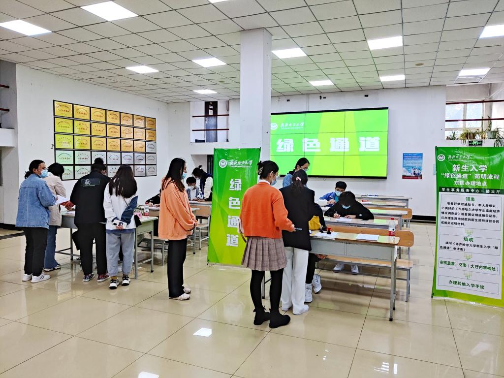 當接新生的校車駛入校園時,來自全國各地的2021級新生受到我校師生的熱情歡迎。各部門、學院師生以飽滿的精神狀態(tài)和熱情周到的服務,引導新生辦理系列入學手續(xù),迎新工作文明熱烈、井然有序。