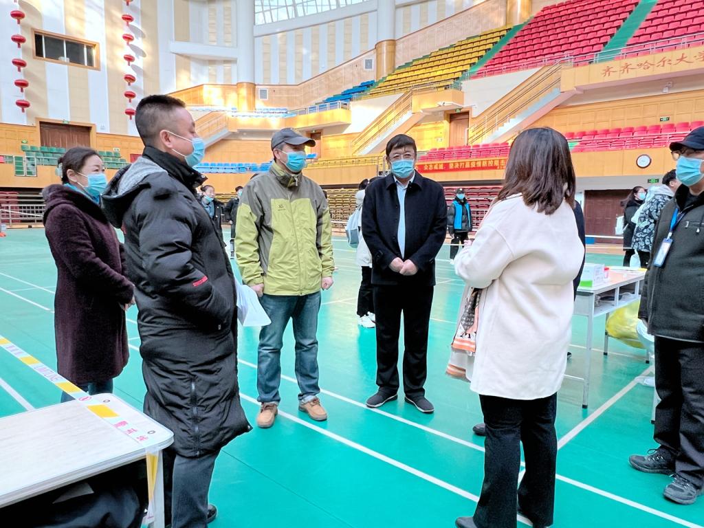 11月7日上午,校黨委副書記張文治、副校長叢喜權(quán)在相關(guān)部門負(fù)責(zé)人陪同下,深入體育館等地,仔細(xì)詢問核酸檢測的流程安排、人員安排、應(yīng)急措施等情況,親切慰問現(xiàn)場志愿者和工作人員,對各有關(guān)單位的積極配合、辛苦付出表示感謝,并強(qiáng)調(diào)學(xué)生全員核酸檢測是學(xué)校筑牢安全防線的必要措施,相關(guān)部門和學(xué)院要充分認(rèn)識到這項(xiàng)工作的重要性,在思想上時刻繃緊疫情防控這根弦,認(rèn)真把控每個環(huán)節(jié),確保高質(zhì)量完成核酸檢測采樣工作。