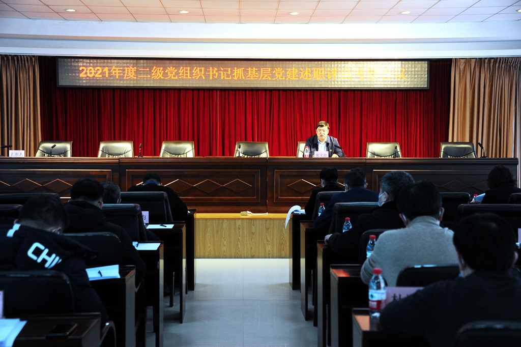 12月29日下午,學校在求實樓五樓會議室召開2021年度二級黨組織書記抓基層黨建述職評議考核會。校領導陳桂芝、董玉庭、齊宏偉、張文治、王剛、叢喜權、張樹軍、呂厚均、李奇楠、陶佰睿出席會議,學校黨委委員、紀委委員,各二級黨組織書記、部分“兩代表一委員”和教師代表參加了述職評議會。會議由校黨委副書記張文治主持。