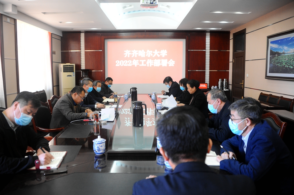 會上,校長、黨委副書記董玉庭在講話中從七個方面對學校2022年工作進行了部署。一、堅持把教師作為事業發展的第一資源,打造人才工作高質量發展新格局。要以改革深化“人才強?!睉鹇?,全方位培養引進用好人才,加強教師思想政治和師德師風建設;二、堅持以本為本、推進“四個回歸”,一體化構建高質量本科人才培養體系。要深化應用型轉型發展,推進一流本科教育振興行動計劃實施,提高繼續教育服務供給能力,振興國際教育交流合作;三、堅持內涵式發展,深化學科建設與研究生教育。要發揮學科龍頭作用,深化新時代研究生教育改革;四、堅持深化“三全育人”綜合改革,全面實施時代新人培養工程。要深化思政課建設,加強思想政治工作;五、堅持服務社會主義現代化新龍江建設,全面提升科技創新驅動發展能力。要深化新時代科研評價和“放管服”改革,促進科研創新平臺高質量發展,服務國家戰略需求和龍江全面振興全方位振興;六、堅持辦好人民滿意大學理念,加快推動大學治理體系和治理能力現代化建設。要慎終如始抓好常態化疫情防控工作,推進學校“十四五”時期事業發展規劃,深入推進依法治校,深化新時代教育評價改革,全力辦好建校70周年校慶,提升綜合服務管理規范化、精細化、便民化水平;七、學習貫徹落實習近平新時代中國特色社會主義思想,深入推進新時代黨的建設新的偉大工程。要始終把政治建設擺在首位,深化黨的創新理論武裝,踐行新時代黨的組織路線,堅定不移推進全面從嚴治黨,持之以恒推進作風建設,落實意識形態工作責任制,堅持黨對工會、共青團、統戰、離退休工作的領導,深化文明校園創建和大學文化建設。